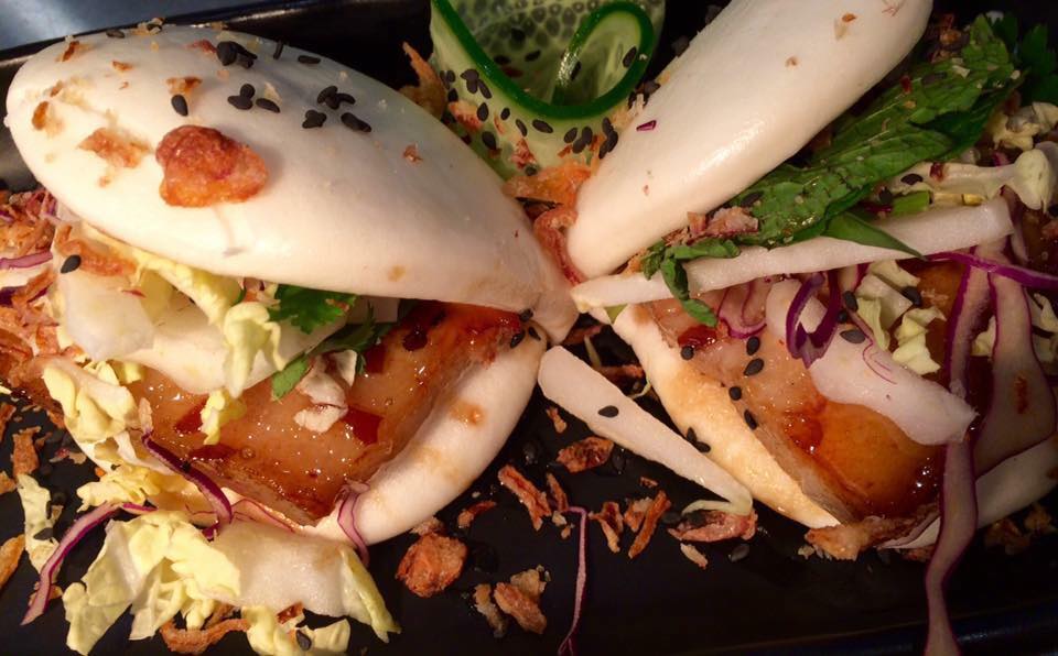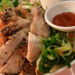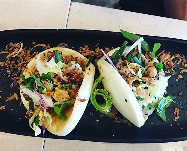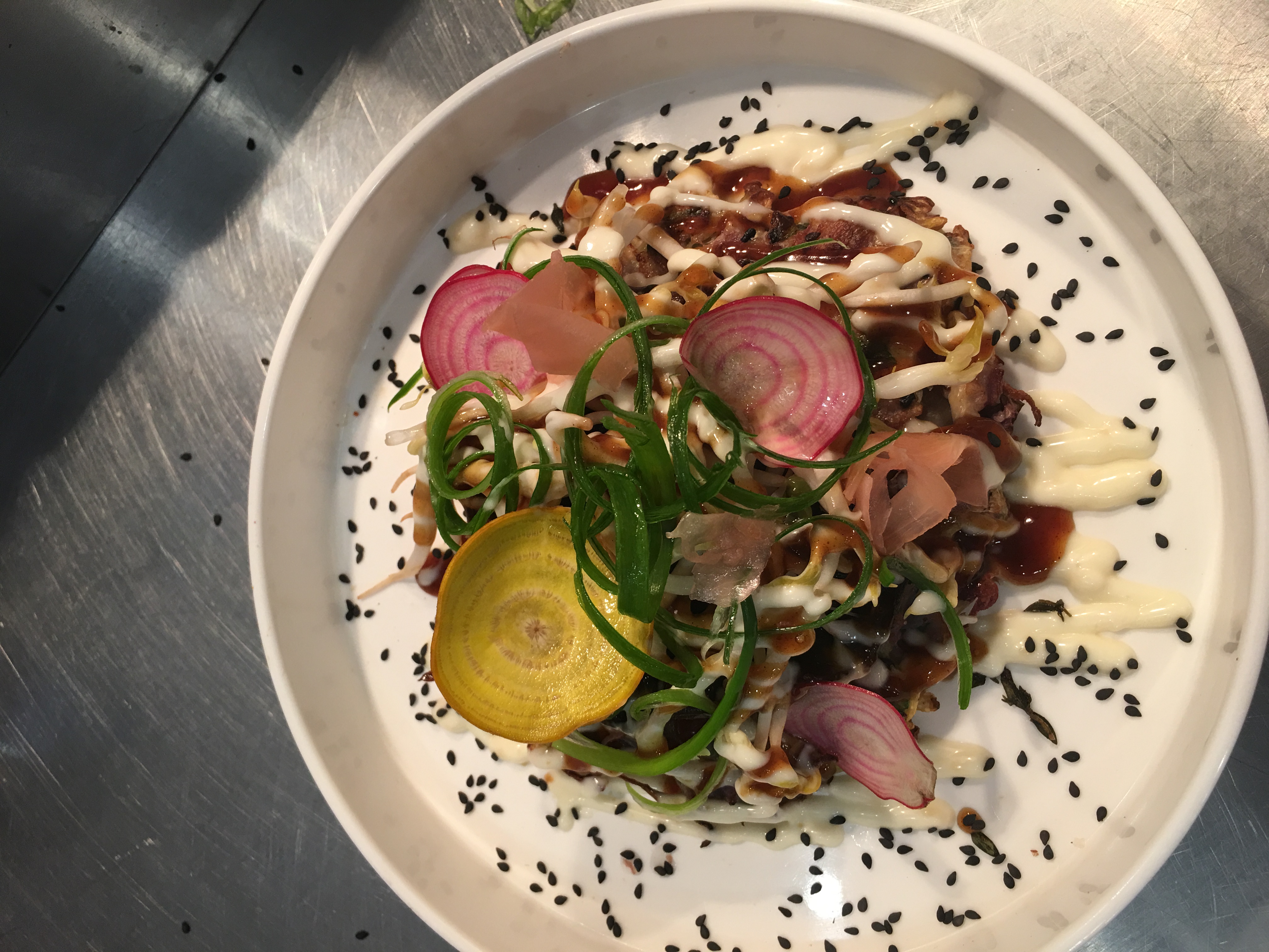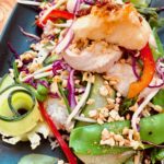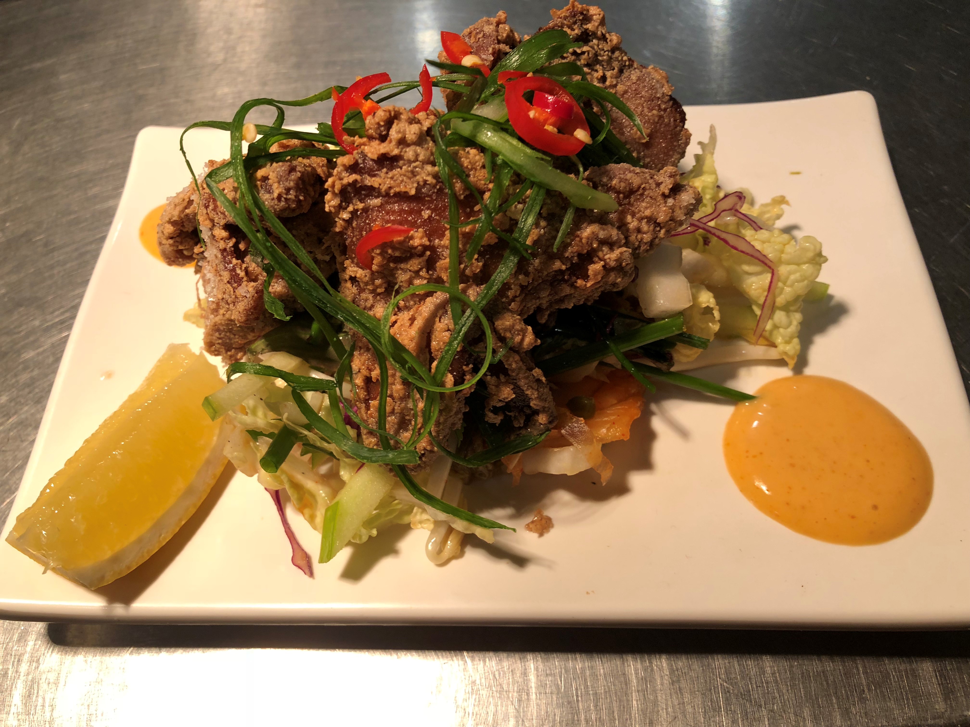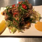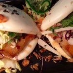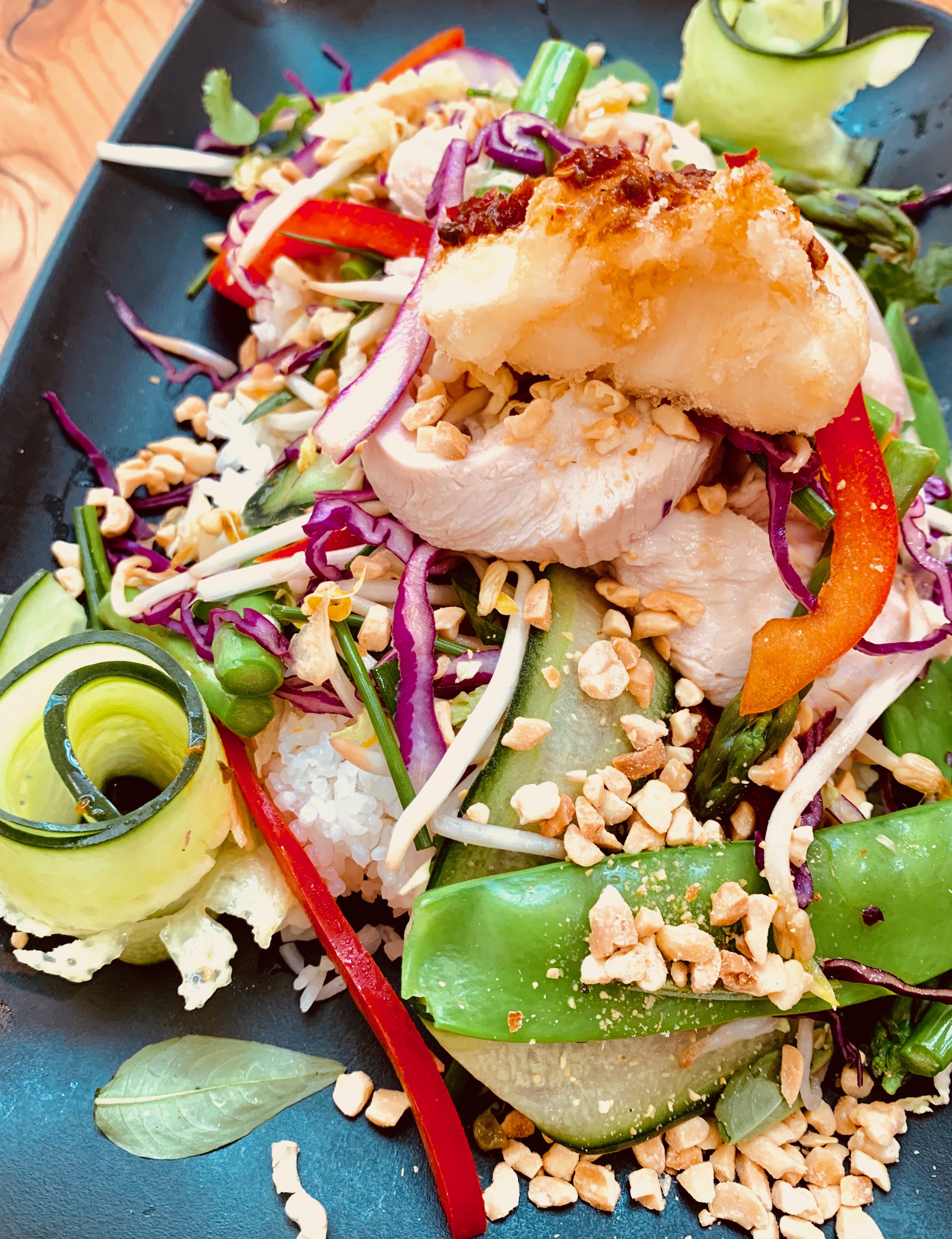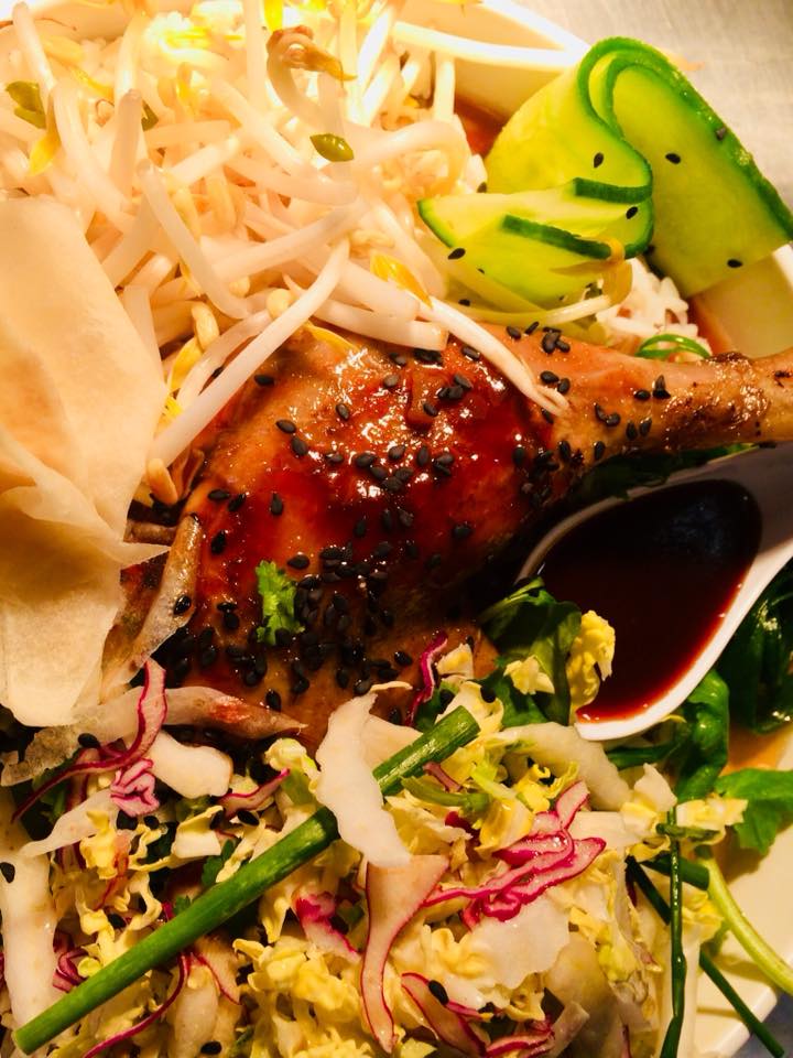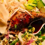 Roti bread wrap, Vietnamese salad, nouc cham sesame dressing, hoisin, fried shallots