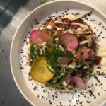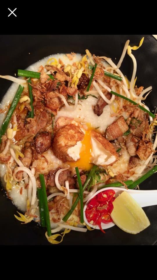 hot rice broth, egg, sesame-soy, spring onions, fried shallots*